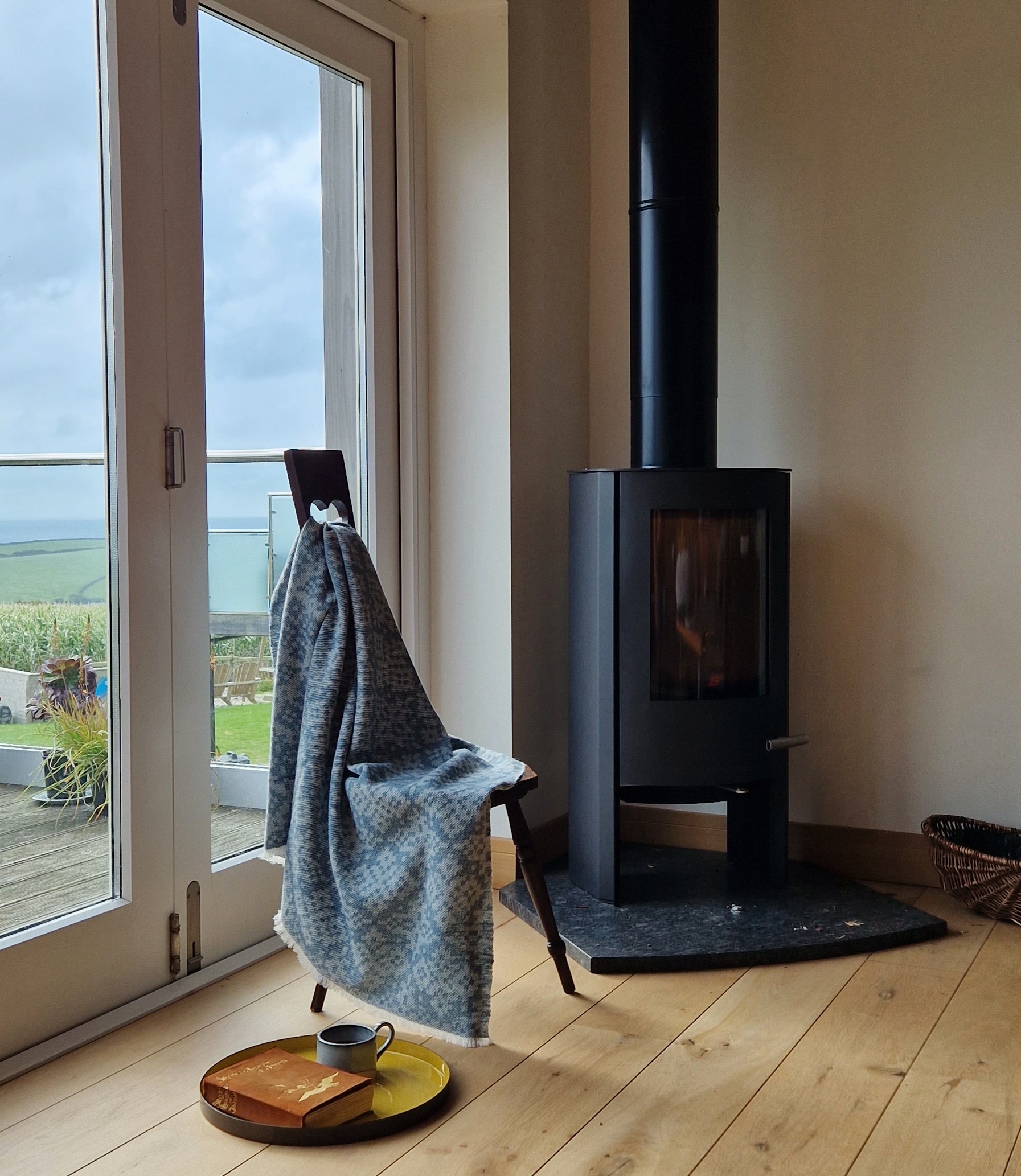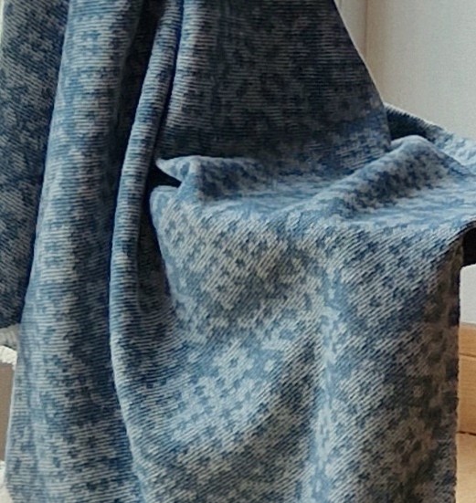 The idea of a comforter was inspired by sitting out at night listening to the owls and watching the stars when we first moved to West Cornwall. I would grab a metre long length of finished cloth that was a sample of a new design that I had kept close at hand as I was particularly fond of it, and wrap it around my shoulders. It was lightweight, not too bulky and I didn’t end up trailing it around in the dewy grass. Most of all it kept the wind out and kept me deliciously warm. And so, was born, the comforter.