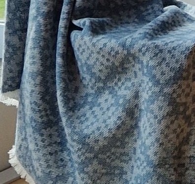 Categories:Comforters, Handwoven Tags:blue, comforter, lap blanket, lap rug, shawl